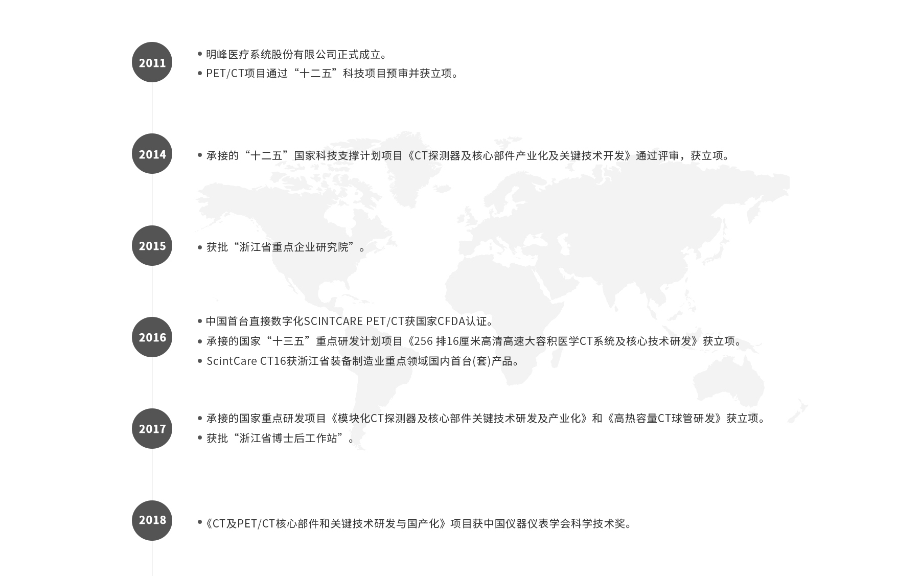 公司擁有上百項(xiàng)世界先進(jìn)的專(zhuān)利技術(shù),被評(píng)為“浙江省引進(jìn)培育領(lǐng)軍型創(chuàng)新創(chuàng)業(yè)團(tuán)隊(duì)”、省級(jí)重點(diǎn)企業(yè)研究院—“浙江省明峰核醫(yī)學(xué)影像系統(tǒng)研究院”、浙江省博士后工作站,入選國(guó)家級(jí)專(zhuān)精特新“小巨人”企業(yè)。先后承擔(dān)國(guó)家“十二五”“十三五”“十四五”多個(gè)重點(diǎn)研發(fā)計(jì)劃項(xiàng)目。
