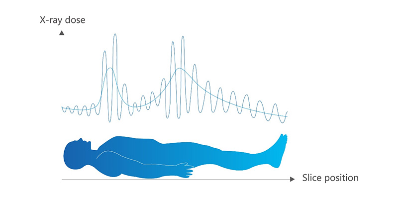 Intelligent mA (imA) technology enables the automated adjustment in the output of the tube according to the scanned anatomical region and patients’ size and weight, and therefore effectively reduces the X-ray dose while preserving the image uniformity of each slice image.