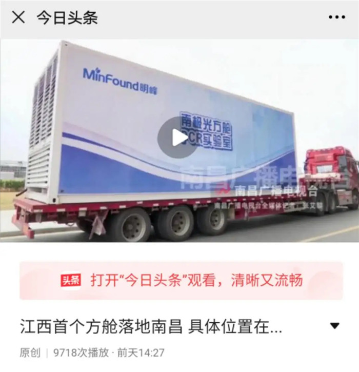 明峰醫療南極光方艙PCR實驗室在南昌落地,同時開啟了全面的市場銷售,正式開始接受訂單,詳詢公司服務熱線:400-035-8898。
