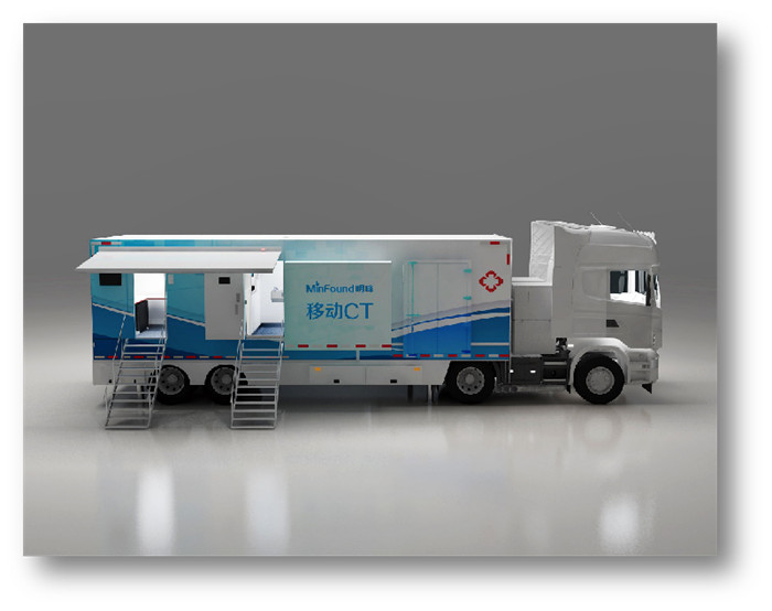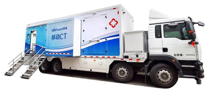 這輛車配備了車載低劑量64排128層螺旋CT機,搭載了AI技術(shù),同時擁有5G影像數(shù)據(jù)快速傳輸技術(shù)等功能。