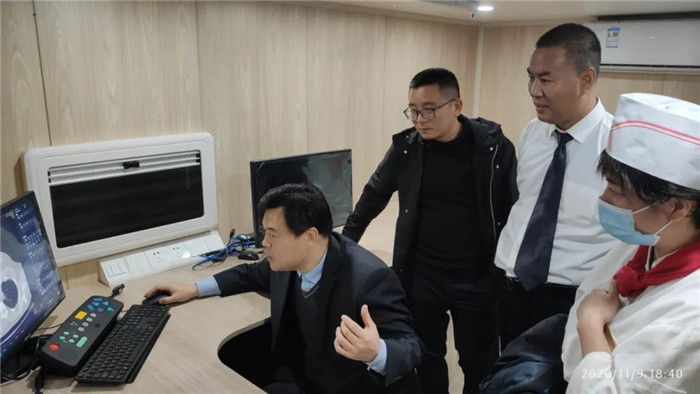 現(xiàn)場,西安醫(yī)學院第二附屬醫(yī)院羅春海主任在明峰醫(yī)療的篩查車上為當?shù)匕傩者M行了掃描檢查。