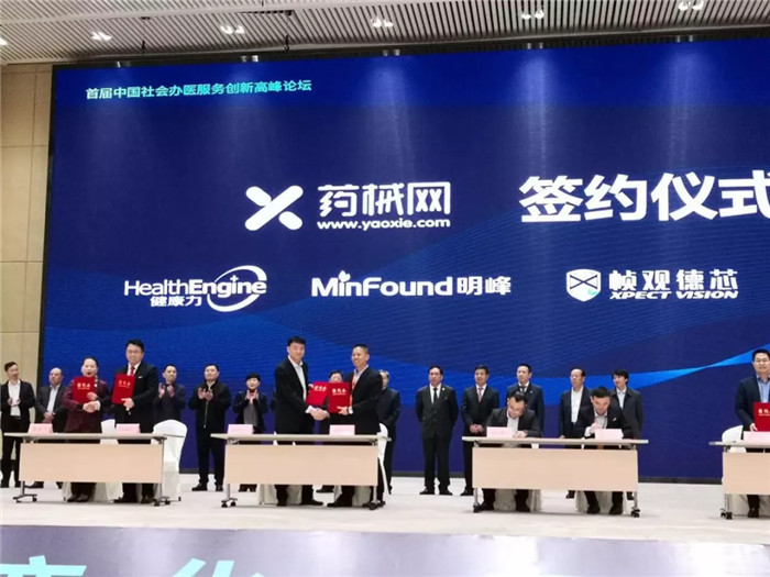 現場,在領導、嘉賓和客戶的見證下,明峰醫療、央企國宜盛世集團、華為云、順豐物流、廈門國際銀行、健康力、深圳幀觀德芯以及廈門中藥廠,各戰略合作客戶簽約代表分別與藥械網一一簽訂了戰略合作協議。