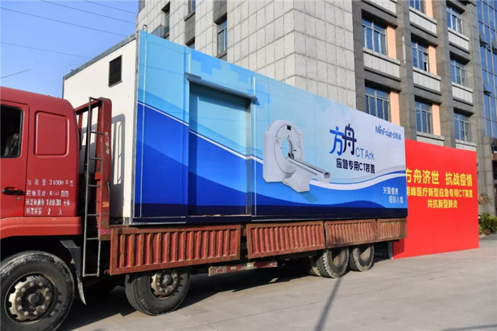 方舟CT(CT Ark)能夠趕赴疫情現(xiàn)場(chǎng)或搶險(xiǎn)救災(zāi)第一線(xiàn),在獨(dú)立合適場(chǎng)地快速設(shè)置,可以獨(dú)立于醫(yī)院之外,保護(hù)易感人群;