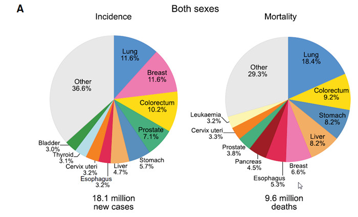 ▲2018年男女10大常見癌癥的病例和死亡分布情況